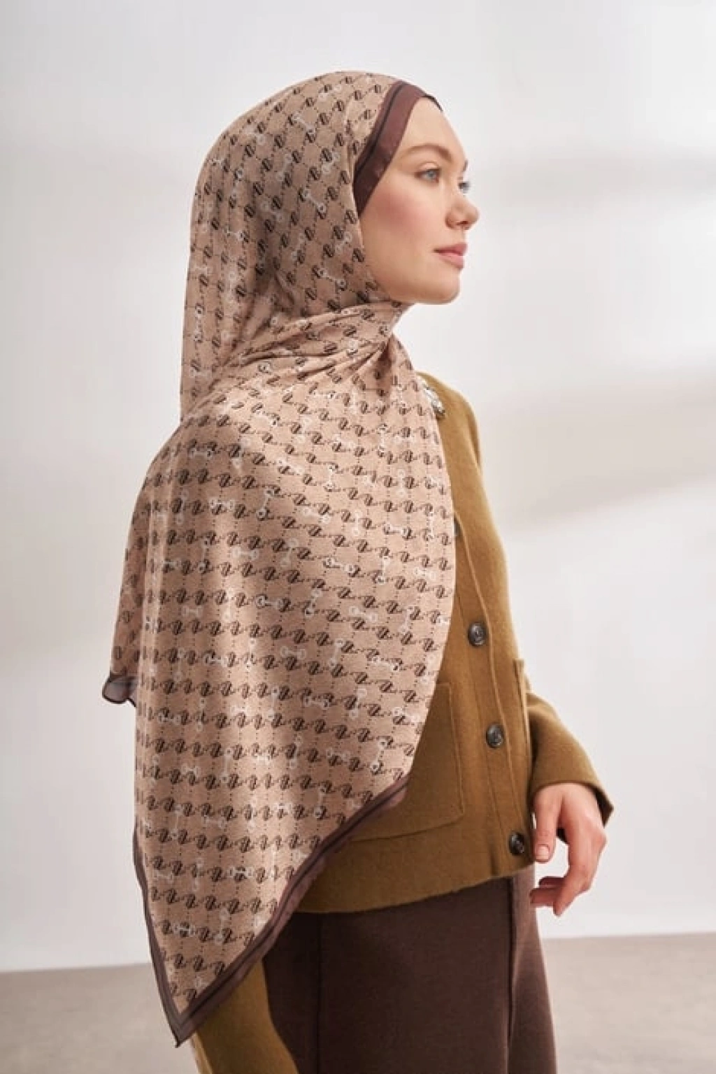 İTHAL VUAL MONOGRAM DESEN ŞAL - BEJ - KAHVE