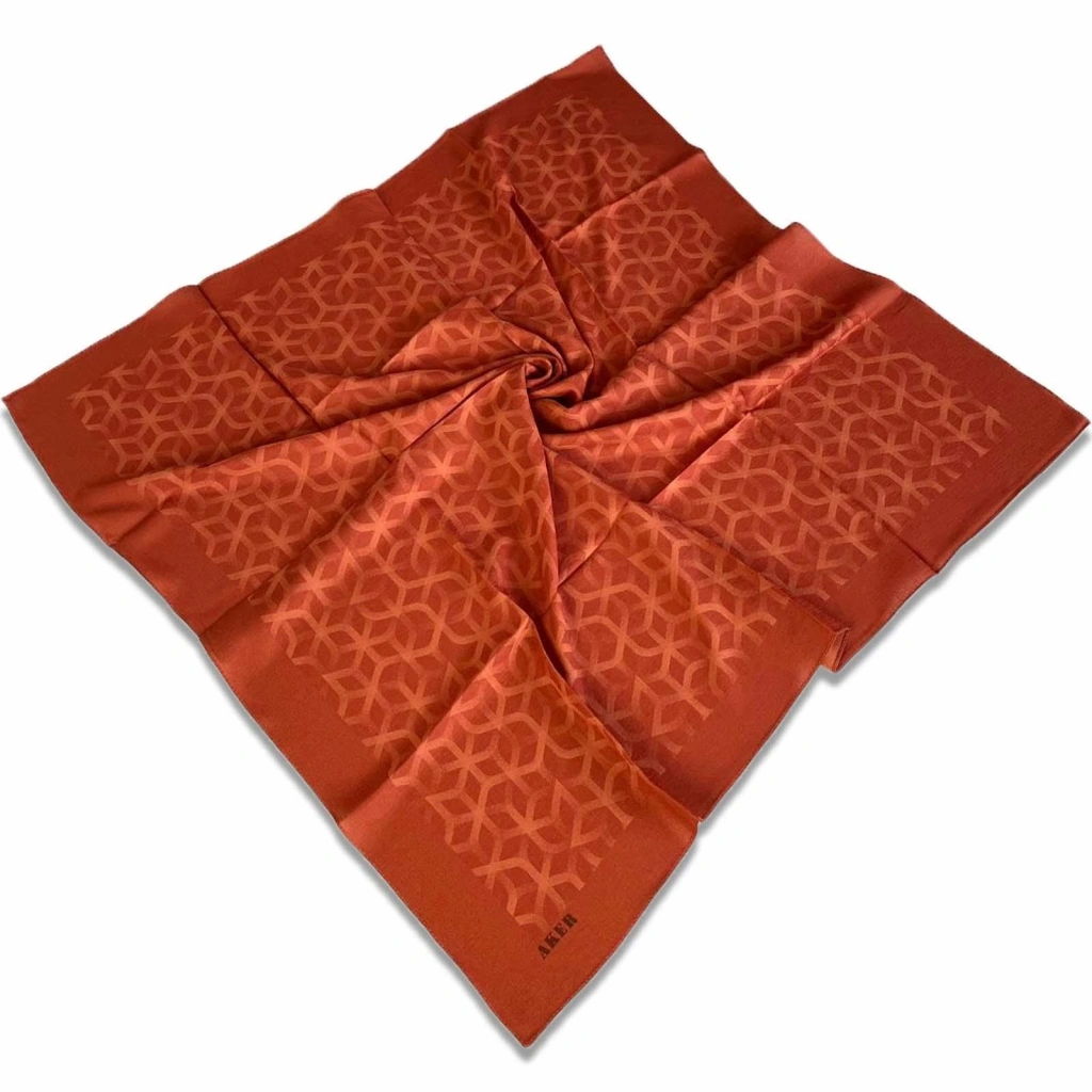 Oranj Etnik Desen %100 Twill İpek Eşarp